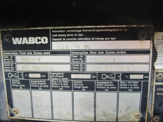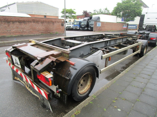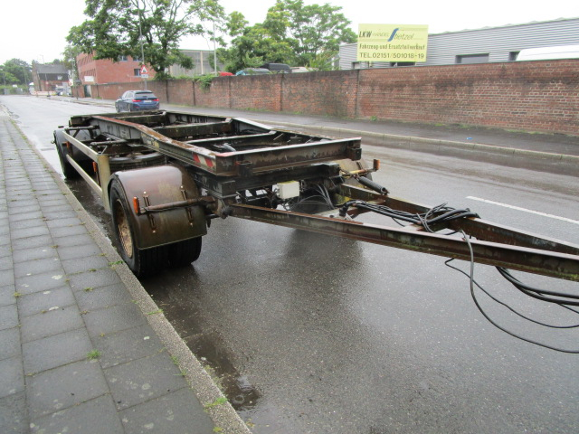 BPW-Achsen, Blattfederung, Trommelbremse, Reifen: 265/70 R19,5, Reifenzustand: ca. 30%, Containerveriegelung (Pneumatisch), Duomatic-Luftanschluss.