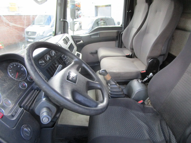 kl. Fahrerhaus m. Mittelsitz, mech. 6-Gang, Federung: Blatt/Luft, Reifen: 215/75 R17,5, Reifenzustand: 30/30%, ABS, AHK., Motorbremse (autom.), elektr. + beheizbare Aussenspiegel, Tempomat, dig. Tachograph, Sonnenblende, Dachspoiler, R/CD.