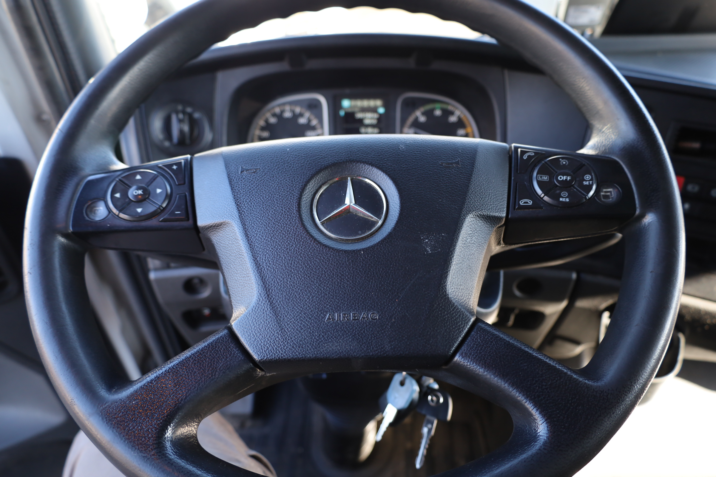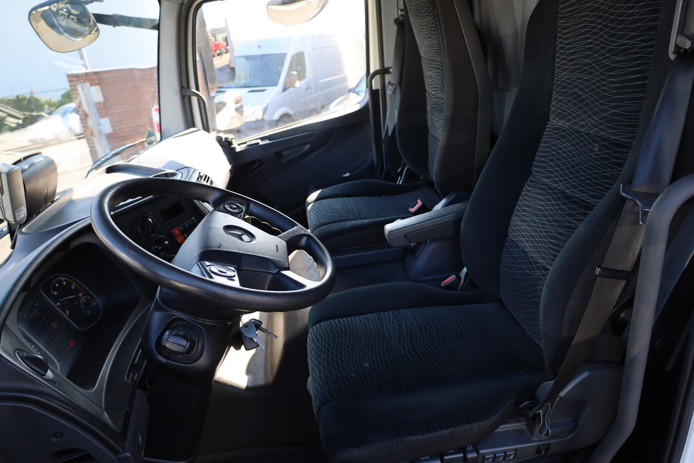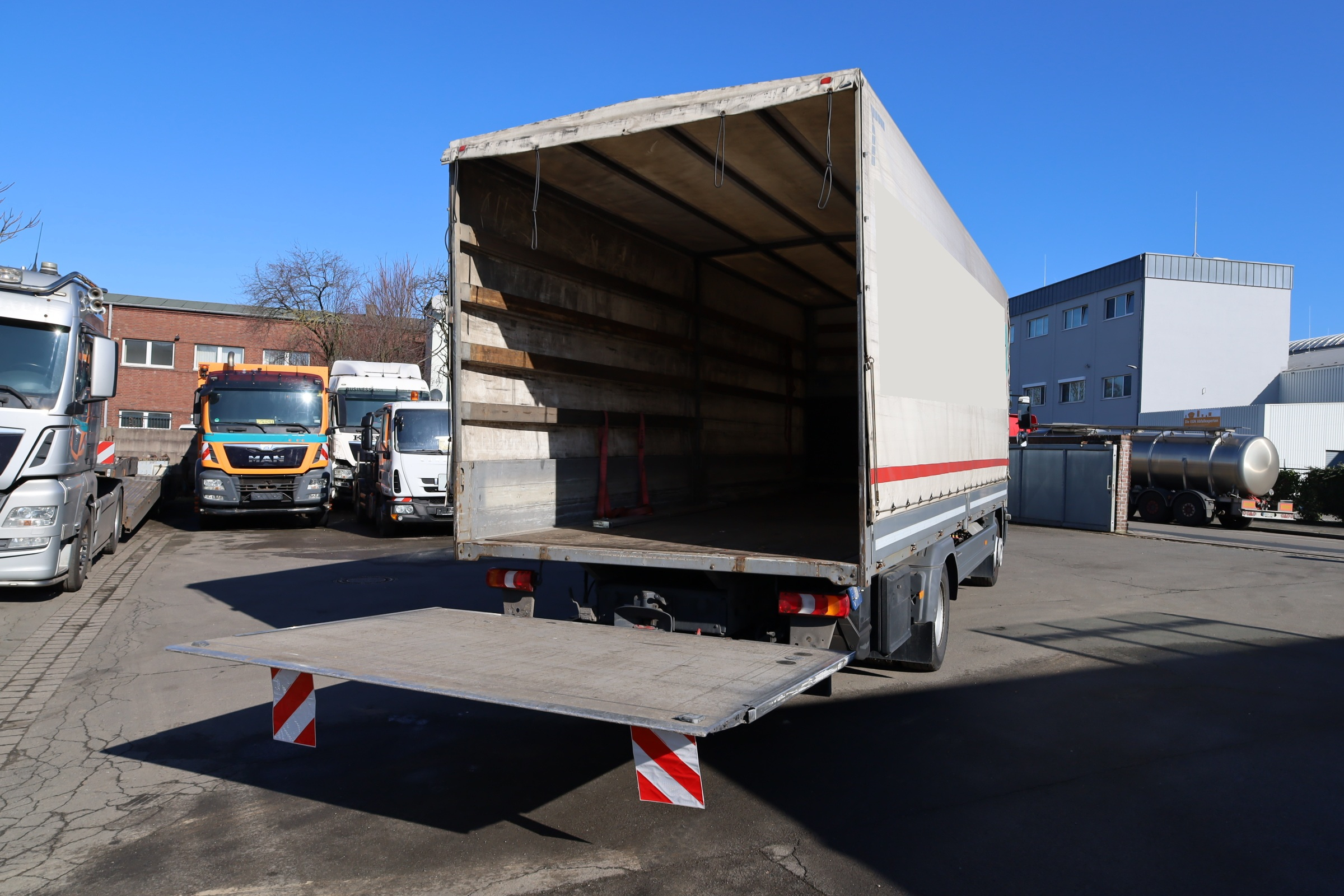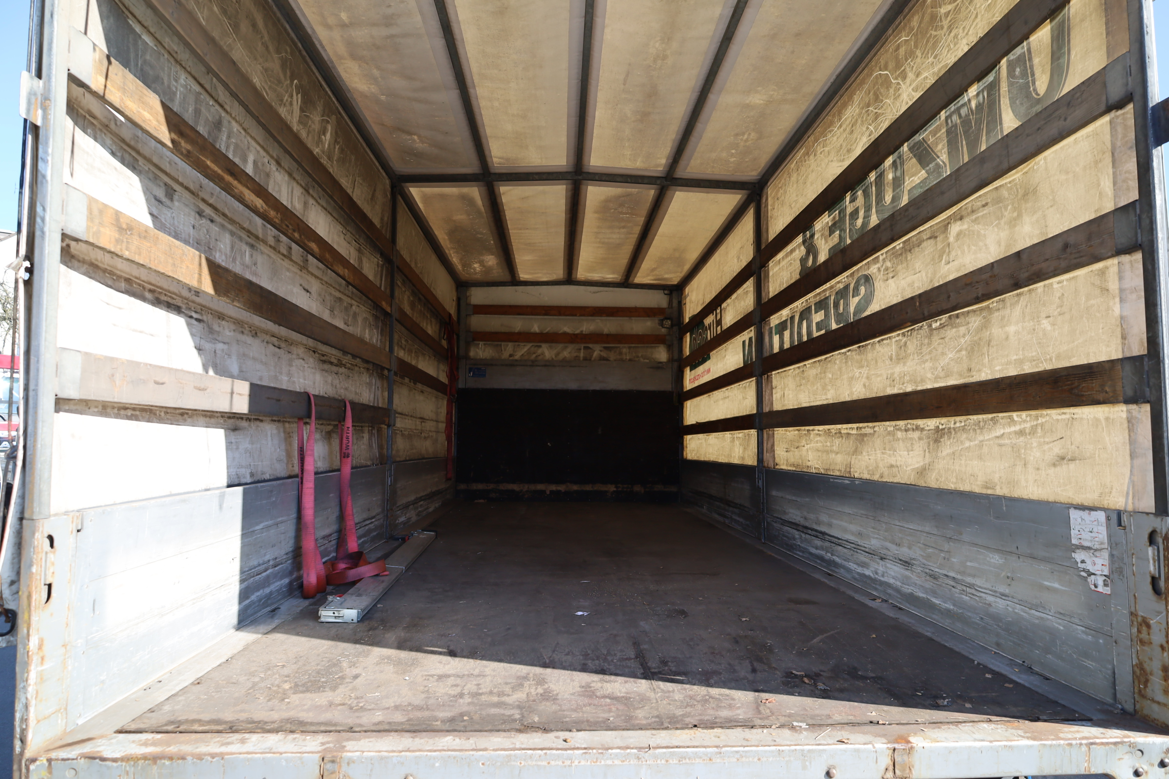 kl. Fahrerhaus mit 3 Sitzen, Automatik, Blatt/Luft, Radstd.: 4800mm, Reifen: 285/70R19,5, Reifenzustand: 70/70%, Klima, Sitzheizung, Radio/CD, AHK (Maul), Dachluke, el. Fenster, el. Spiegel, beheizbare Spiegel, ABS, ASR, Spurhalteassistent, Sonnenblende, Motorbremse, dig. Tacho, Berganfahrhilfe, Dachspoiler, Multifunktionslenkrad.