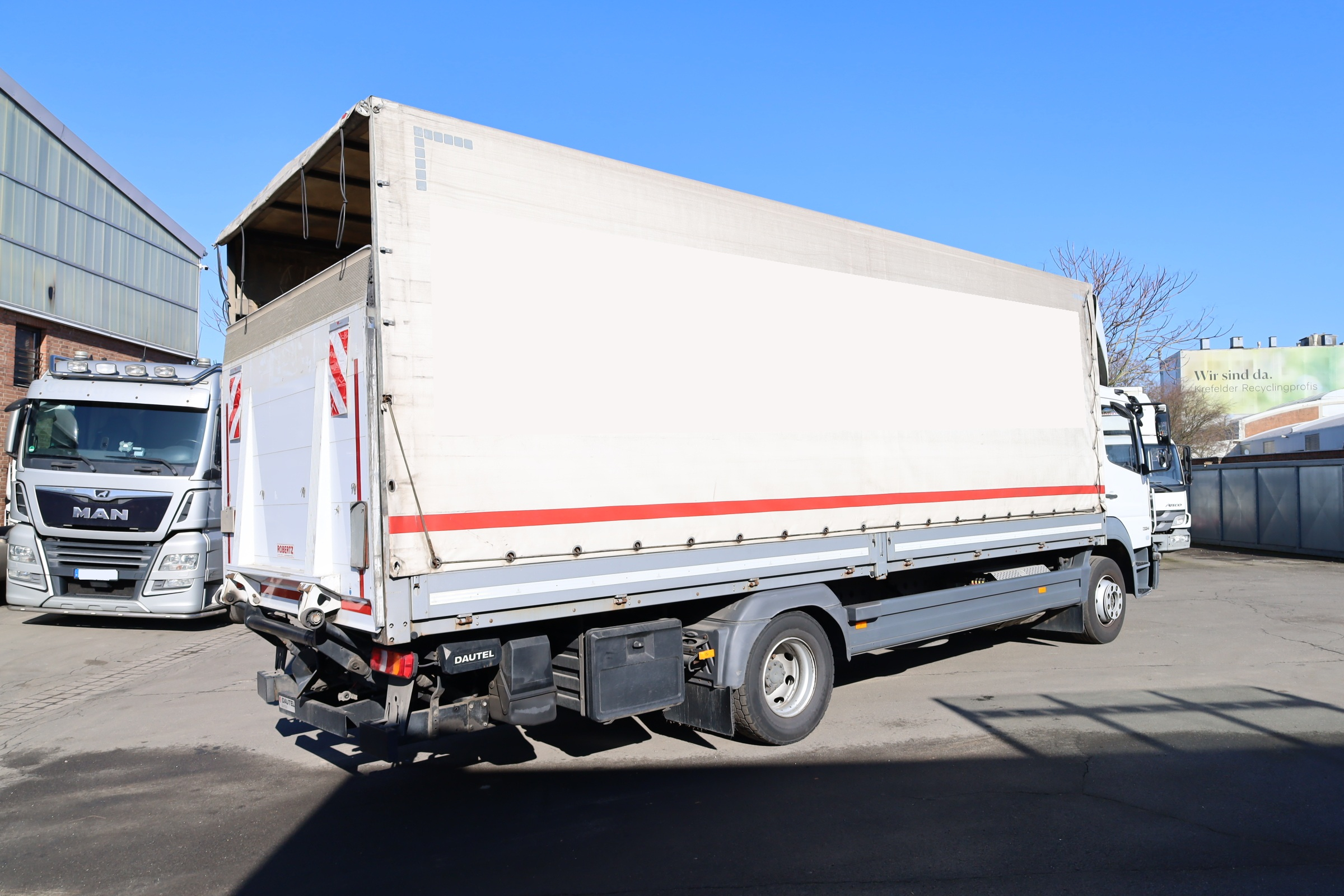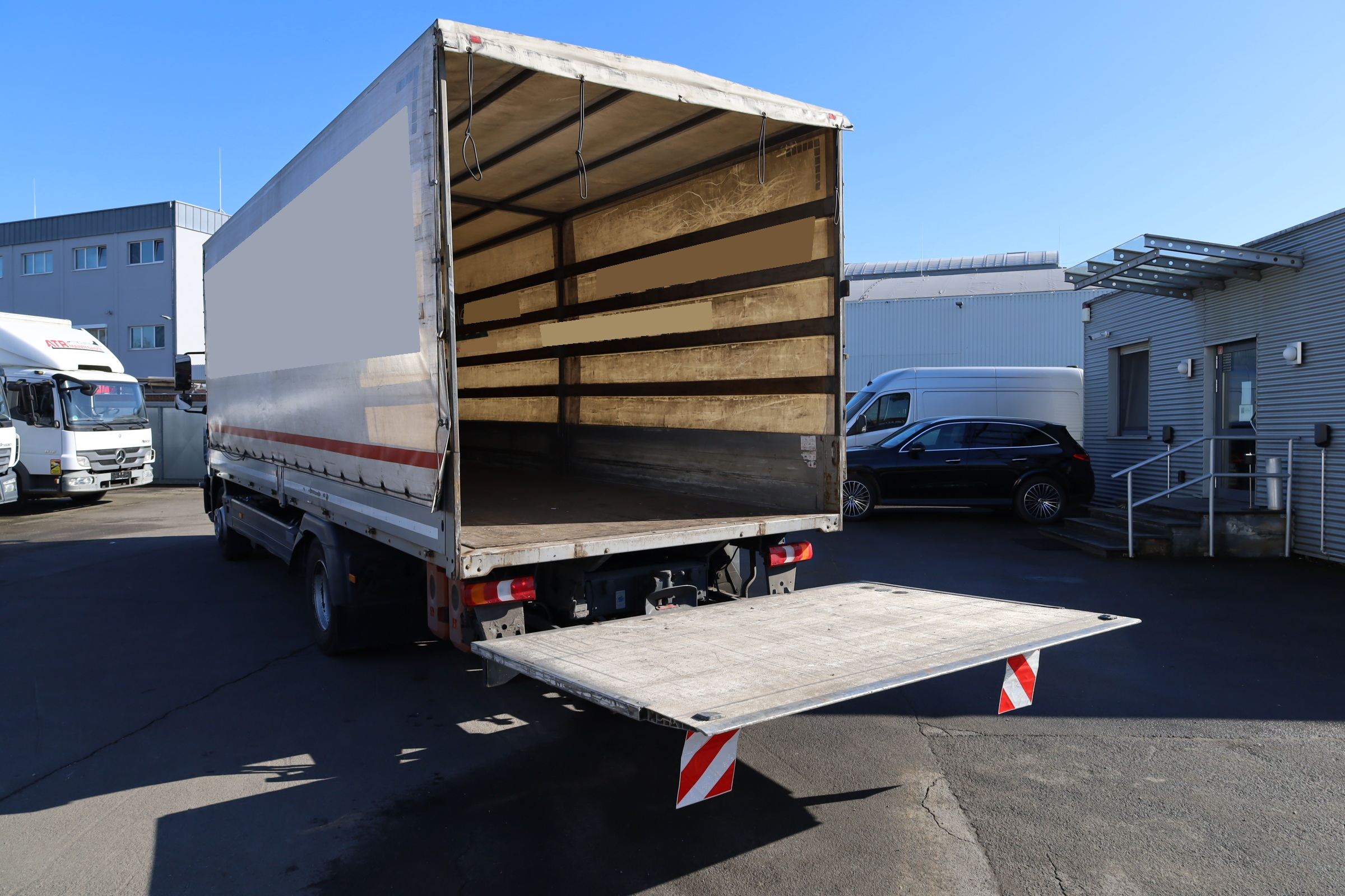 DB 1324L Atego Pritsche + Plane, Ladebordwand (1500 Kg), Klima, Automatik, 3 Sitze.