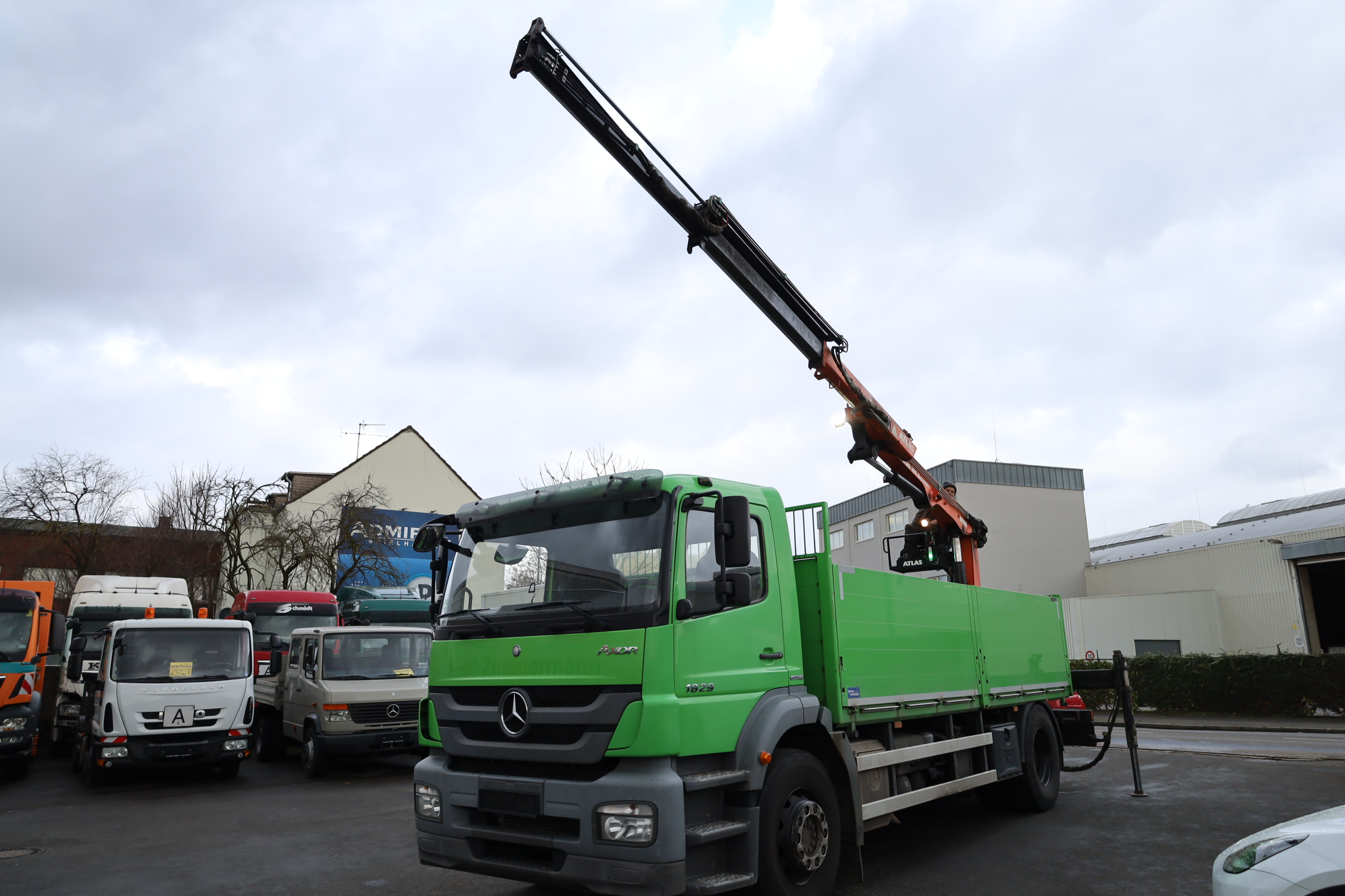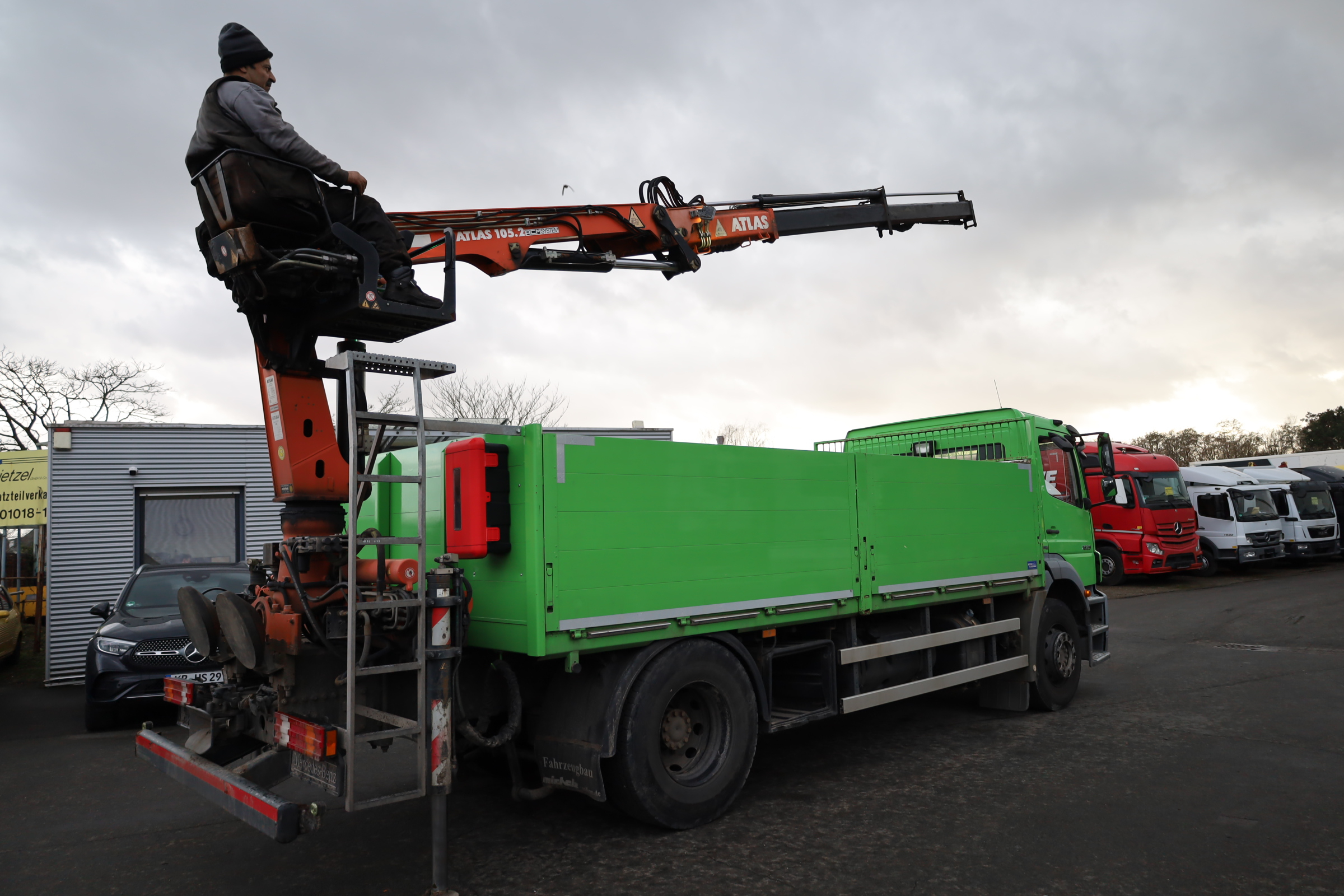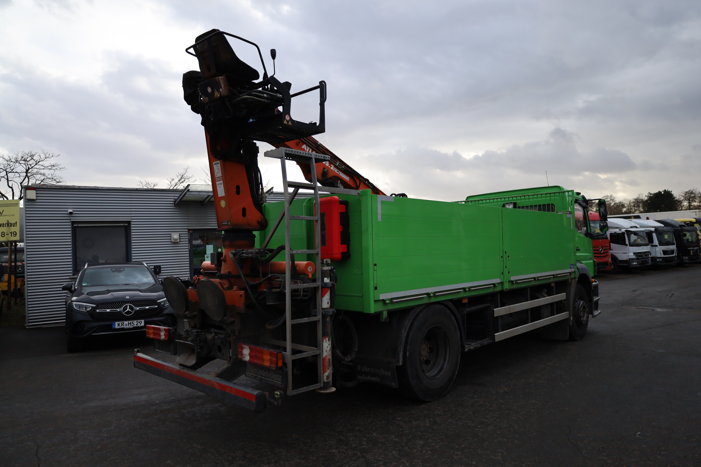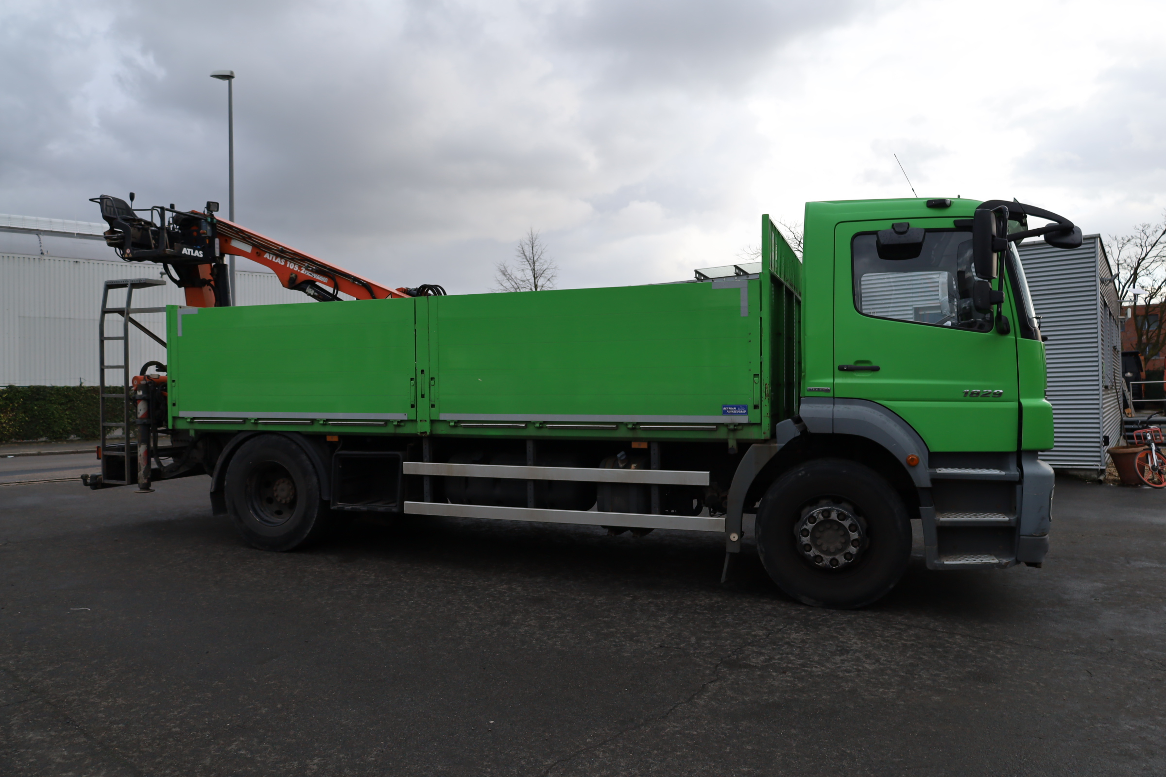 Mercedes-Benz 1829 L Axor 4x2, LKW off. Kasten m. Ladegerät, Baustoffpritsche, Euro5, Atlas-Ladekran 105.2 VB-A12, Hochsitz, Original-KM!