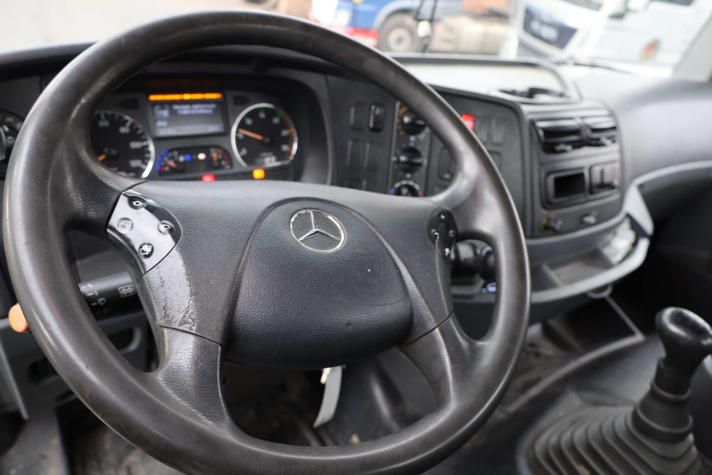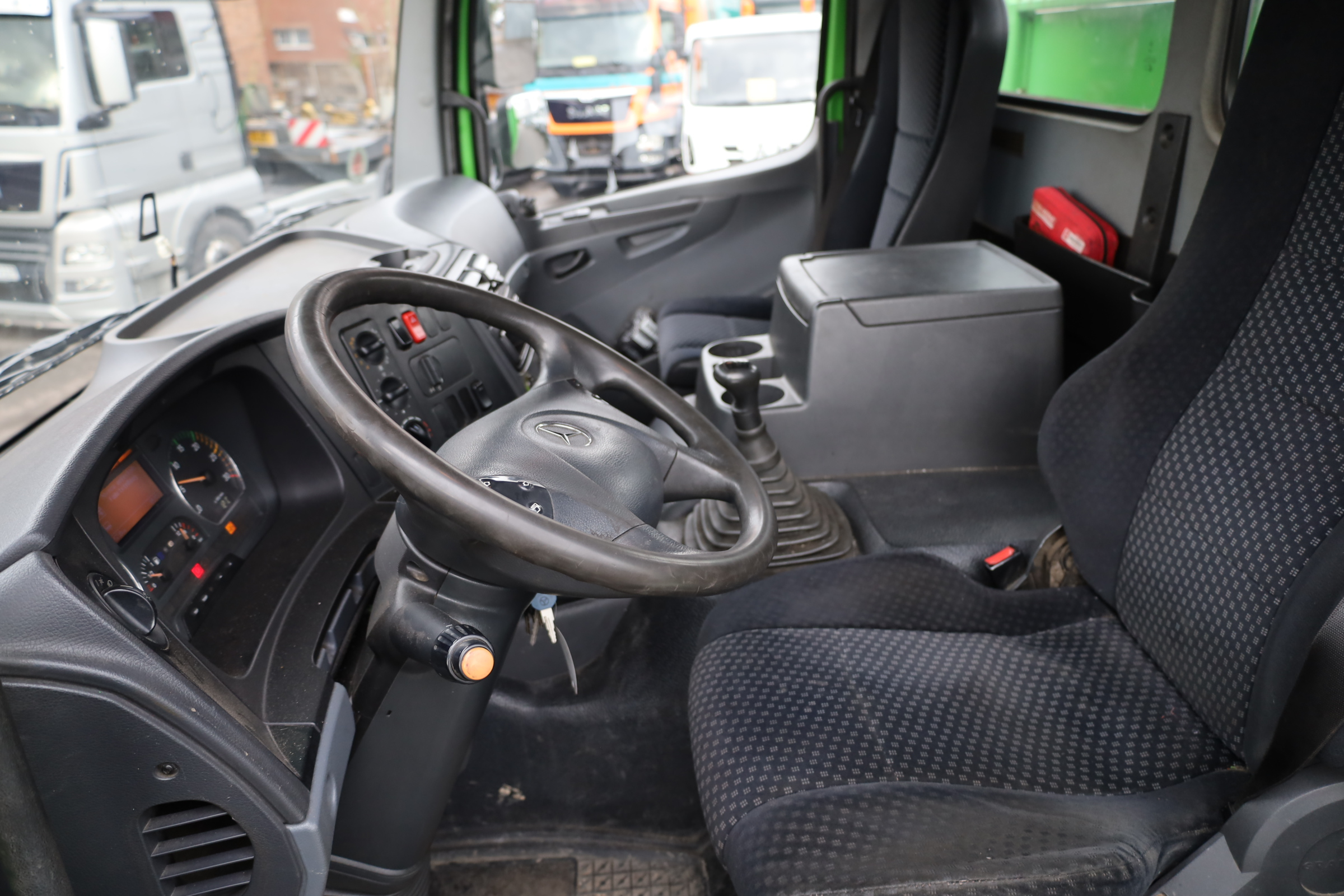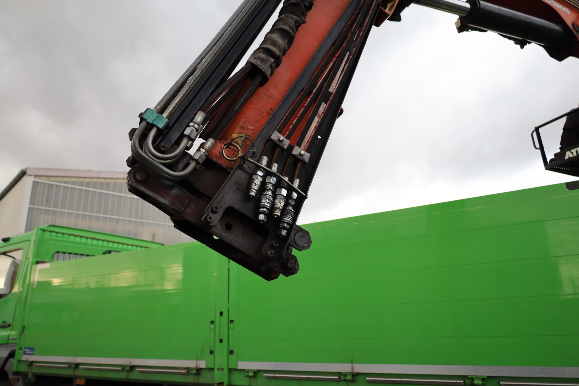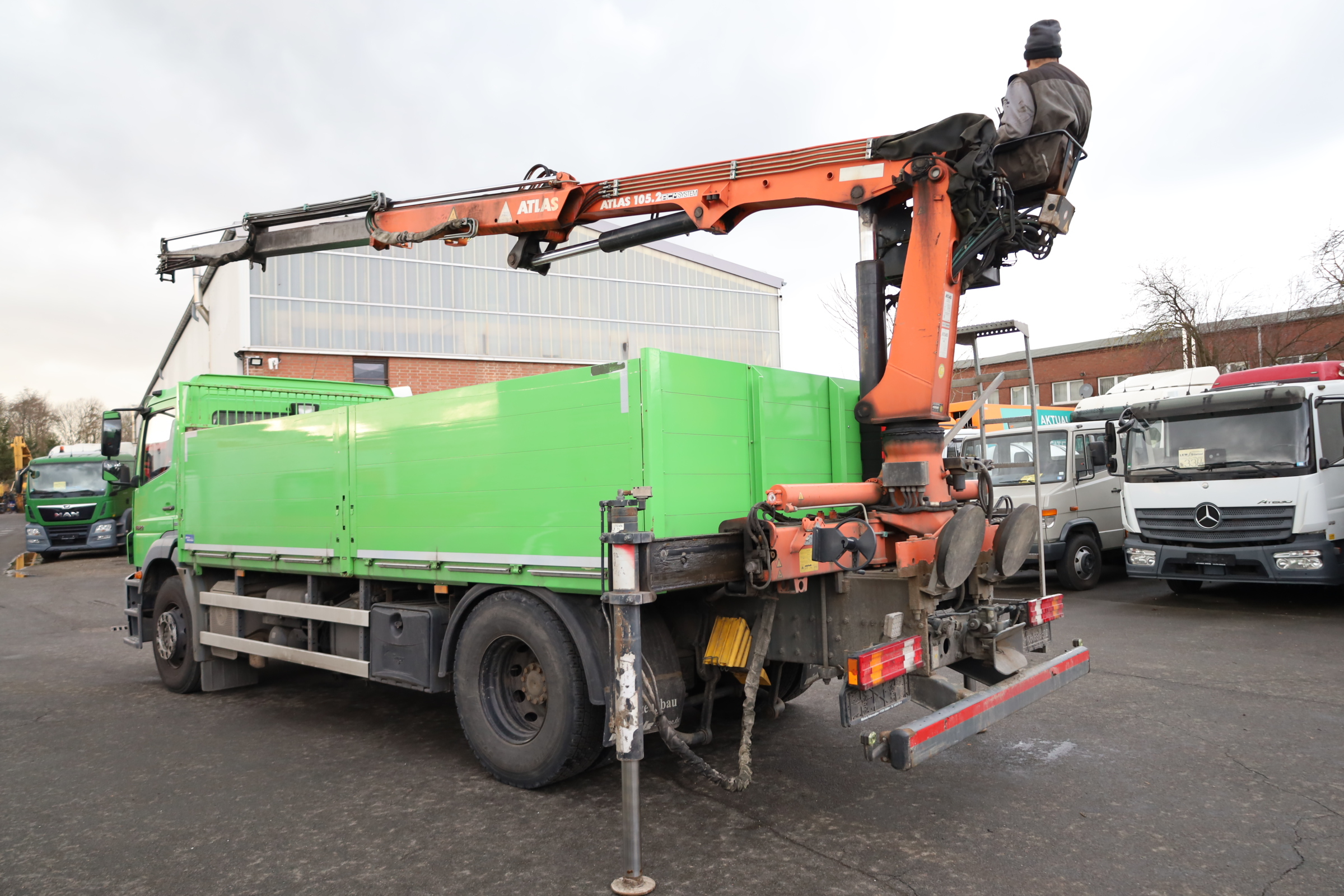kl. Fahrerhaus, mech. Schaltung (8+C), Radstd.: 4.800mm, Federung: Blatt/Luft, Reifen: 315/80 R22,5, Reifenzustand: 90/90%, ABS/AHK, Anrollhilfe, Dachluke, elektr. Fensterh. + Aussenspiegel (beheizbar), dig. Tachograph, Diff.-Sperre, Staukasten, Sonnenblende, Tempomat, MFL, MSS, R/CD, Atlas-Ladekran Typ: 105.2 VB-A12, 2-Punkt-Abstützung, 2x hydr. Ausfahrbar, BJ. 2012. Maximale Traglast: 2,60 t, Traglast bei max. Reichweite: 1,29 t (bei 8,56 m).- KM-Stände sind abgelesen (lt.Tacho)