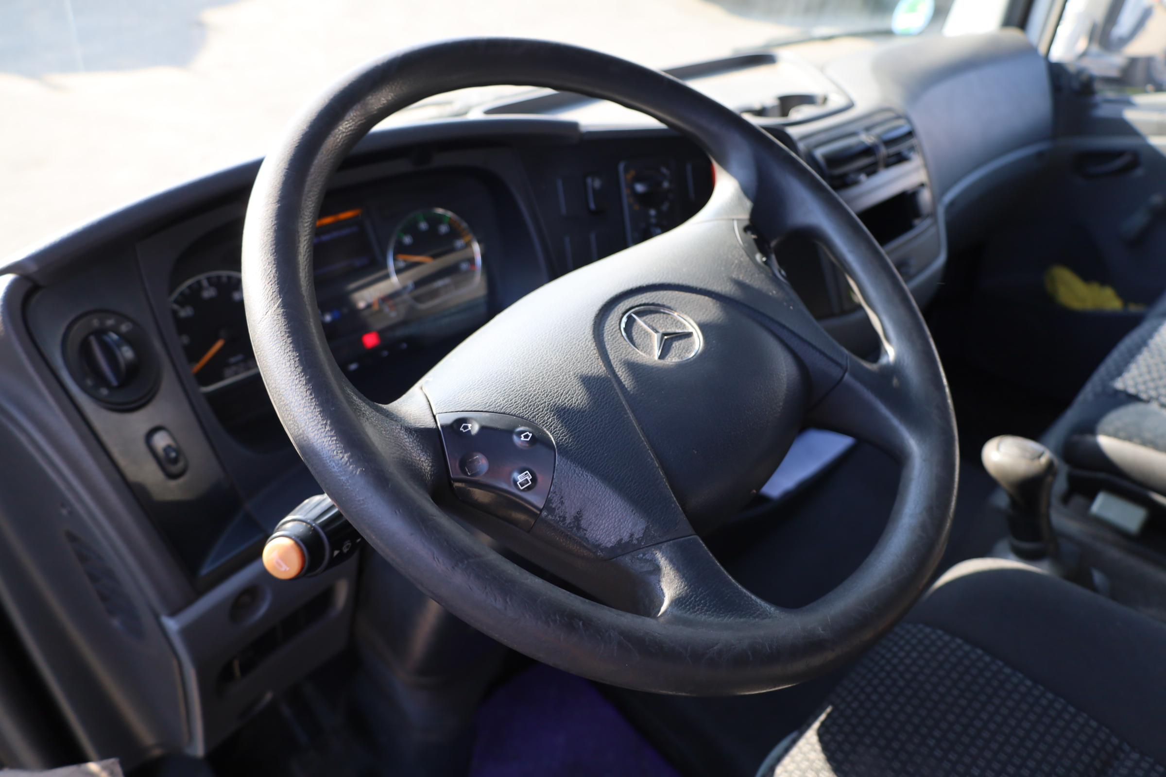 kl. Fahrerhaus mit 3 Sitzen, mech. Schaltung, Blattfederung, Radstd.: 4200mm, Reifen: 215/75R17,5, Reifenzustand: 30/70%, Klima, Radio/CD, Dachluke, el. Spiegel, beheizbare Spiegel, ABS, ASR, Motorbremse, dig. Tacho, Berganfahrhilfe, Dachspoiler, Reserverad, MSS.